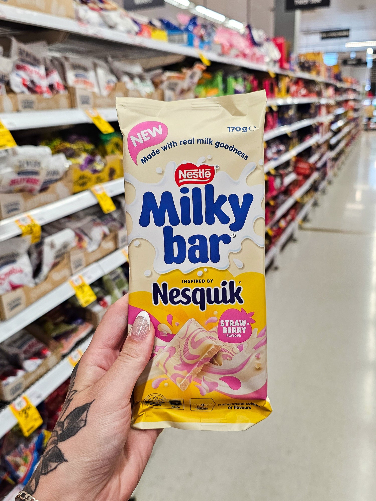We smuggled a Milkybar x Nesquik Strawberry block across the ditch… and it’s looking for a new home 👀🍓