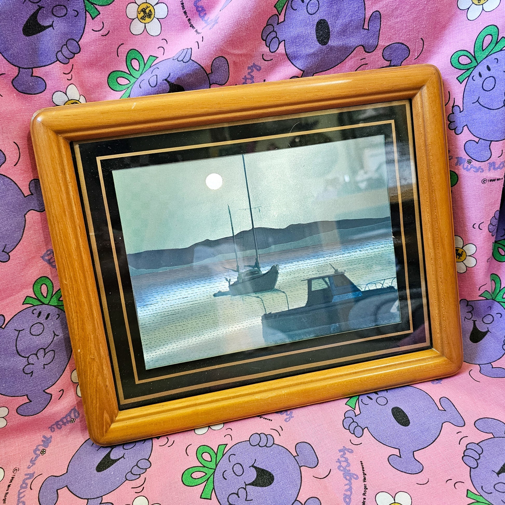 Framed with semi-rare teak wood.